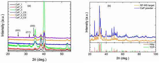 - Boyd, A.R.; O’Kane, C.; Meenan, B.J. Control of Calcium Phosphate Thin Film Stoichiometry Using Multi-Target Sputter Deposition. Surf. Coat. Technol. 2013, 233, 131–139. [Google Scholar] [CrossRef]