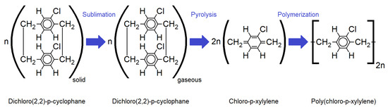 - Fortin, J.B.; Lu, T.-M. Chemical Vapor Deposition Polymerization—The Growth and Properties of Parylene Thin Films, 1st ed.; Kluwer Academic Publishers: Dordrecht, The Netherlands; New York, NY, USA; London, UK; Boston, MA, USA, 2004; ISBN 1-4020-7688-6. [Google Scholar]