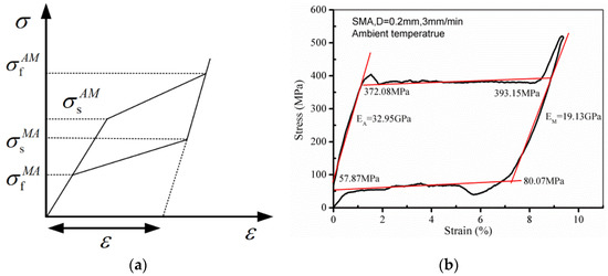 The stress–strain curve of the SMA wire. (a) Ideal. (b) Experimental.