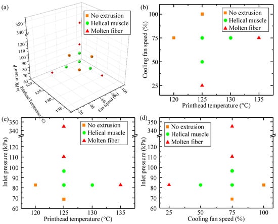 | Muscle Group No. | Printhead Heater Temperature (°C) | Cooling Fan Speed (%) | Inlet Pressure (psi) |