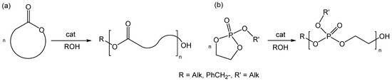 ROP of lactones (a) and five-membered ring phosphates (b).