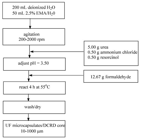 - Brown, E.N.; Kessler, M.R.; Sottos, N.R.; White, S.R. In situ poly(urea-formaldehyde) microencapsulation of dicyclopentadiene. J. Microencapsul. 2003, 20, 719–730. [Google Scholar] [CrossRef] [PubMed]
