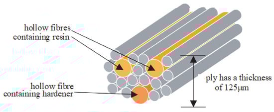 - Norris, C.J.; Bond, I.P.; Trask, R.S. The role of embedded bioinspired vasculature on damage formation in self-healing carbon fibre reinforced composites. Compos. A 2011, 42, 639–648. [Google Scholar] [CrossRef]