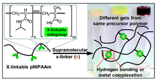 - Rossow, T.; Hackelbusch, S.; van Assenbergh, P.; Seiffert, S. A modular construction kit for supramolecular polymer gels. Polym. Chem. 2013, 4, 2515–2527. [Google Scholar] [CrossRef]