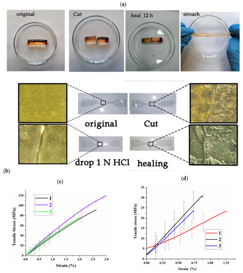 - Zhao, P.-C.; Li, W.; Huang, W.; Li, C.-H. A Self-Healing Polymer with Fast Elastic Recovery upon Stretching. Molecules 2020, 25, 597. [Google Scholar] [CrossRef]
