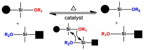 The kinetics of the exchange reaction in the absence of any catalysts at various temperatures are well-described by a simple second-order model following from the metathesis mechanism. The found activation energy is ~15.9 kJ/mol [106].