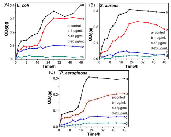 3.5. Antimicrobial Activities of CuO@Ag Nanosheet Composites