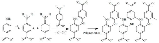 The electrooxidation of 4-ABA at 0.82 V corresponds to the formation of cation-radical (Scheme 1 [,,,]), which undergoes further coupling reactions.