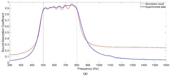 According to Equations (13)–(15), the actual sound absorption coefficient of MSC-AM with vertical incidence can be achieved as shown in Equation (16), and the peak value and valley value of the sound pressure for a certain frequency can be automatically obtained by the standing wave tube tester.
