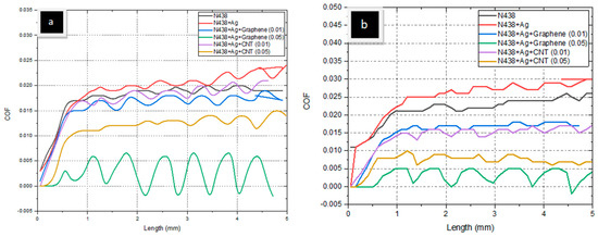- The highest scratch resistance and the lowest COF were observed in the N438 + Ag + Graphene (0.05) and N438 + Ag + CNT (0.05) membranes, which is because the fillers develop high bonding between the matrix and fiber.