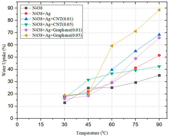 | Water Uptake | 15.959 ± 0.001 | 18.448 ± 0.013 | 29.575 ± 0.016 | 48.909 ± 0.009 | 65.739 ± 0.002 | |