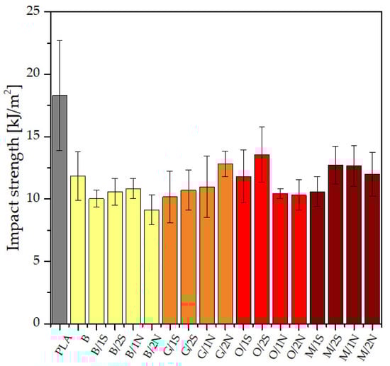 Impact strength of PLA matrix composites.