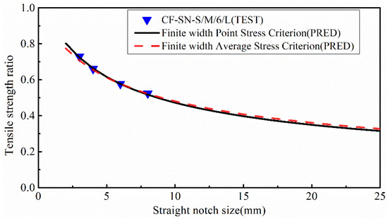 - The finite-width stress criteria are found to be suitable for notched fiber-reinforced laminate specimens with both an infinite width and a finite width, and the size effect of the specimen almost does not affect the prediction results of the tensile strength when using the proposed formulations.