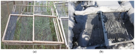 Exposure of BFRP rebar in Yakutsk: (a) in summer and (b) winter.