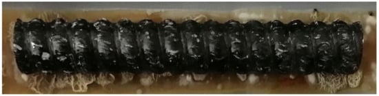 Images of BFRP rebar after testing for monolithicity with a diameter of 6 mm, with the original exposed for 51 months (a) and the bio-infected sample after exposure (b) for 24 months.