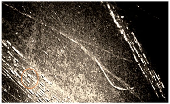 The growth of mycelium was recorded both in the direction along the length between the basalt fibers at the boundaries of the “fiber-binding (hardener)-mycelium of fungi-fiber”, and across the fibers. Additionally, microscopy showed rebar-shaped bacterial cells on the BFRP rebar samples. Some of them had spores at one end, which indicates the preservation of microorganisms within the BFRP rebars after exposure at extremely low temperatures, to minus 42 °C on the day of sampling (Figure 4 and Figure 5).