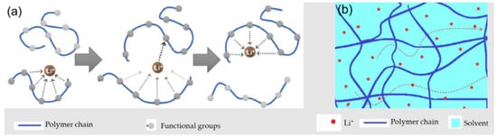 Representative scheme of (a) the predominant Li-ion transport in SPEs and (b) GPEs. Adapted with permission from Wu et al. [14]. Copyright 2021 Elsevier.