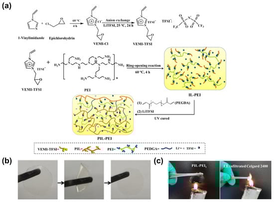 - Tian, X.; Yi, Y.; Yang, P.; Liu, P.; Qu, L.; Li, M.; Hu, Y.-s.; Yang, B. High-Charge Density Polymerized Ionic Networks Boosting High Ionic Conductivity as Quasi-Solid Electrolytes for High-Voltage Batteries. ACS Appl. Mater. Interfaces 2019, 11, 4001–4010. [Google Scholar] [CrossRef] [PubMed]