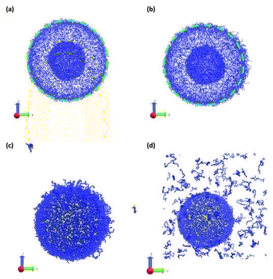 - Šindelka, K.; Limpouchová, Z.; Procházka, K. Computer study of the solubilization of polymer chains in polyelectrolyte complex cores of polymeric nanoparticles in aqueous media. Phys. Chem. Chem. Phys. 2018, 20, 29876–29888. [Google Scholar] [CrossRef]