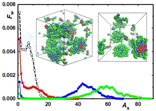 - Buglakov, A.I.; Larin, D.E.; Vasilevskaya, V.V. Self-assembly in Solutions of Amphiphilic Homopolymers: Computer Modeling and Analytical Theory. Macromolecules 2020, 53, 4783–4795. [Google Scholar] [CrossRef]