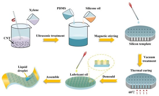 APA StyleLiu, K., Yang, C., Zhang, S., Wang, Y., Zou, R., Lee, A., Deng, Q., & Hu, N. (2022). Multifunctional Slippery Polydimethylsiloxane/Carbon Nanotube Composite Strain Sensor with Excellent Liquid Repellence and Anti-Icing/Deicing Performance. Polymers, 14(3), 409. https://doi.org/10.3390/polym14030409