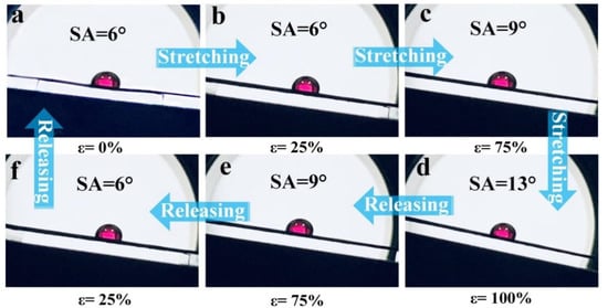 3.2. The Wetting Behavior and Liquid Repellence Property of the Slippery PDMS/CNT Composite Strain Sensor