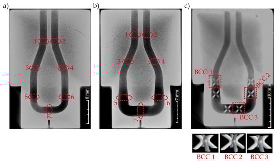 The X-ray source is operated with the current and voltage values of 0.7 μA and 450 kV, respectively; where the scanned image has the spatial resolution of 0.5 mm. A constant rotation step of 0.9° is used as the acquisition interval. Hereby, we obtained four hundred (400) 2D CT images and these images were used to build the 3D CT image using the commercial software of VGStudio MAX 3.4 (Volume Graphic GmbH, Heidelberg, Germany). Thanks to the 3D CT image, we can visualize the CCC pathways in the printed mold geometries.