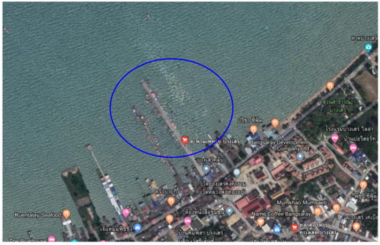 Map showing the coordinate of the seawater sampling point at Phethai bridge, Bang-Sare subdistrict, Sattahip district, Chonburi province, Thailand.