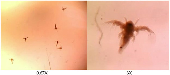 Optical micrographs of seawater mites (Artemia franciscana) used in this study.