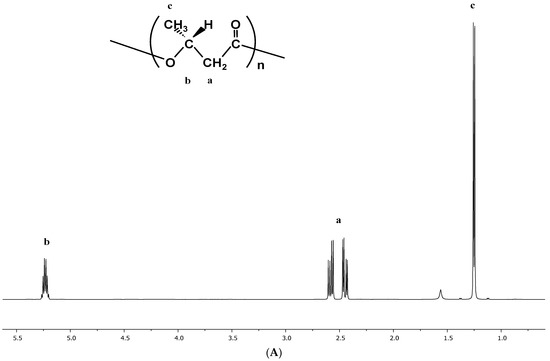 1H-NMR spectra of the extracted PHA samples used in biodegradation test in seawater: (A) PHB, (B) PHBVV.