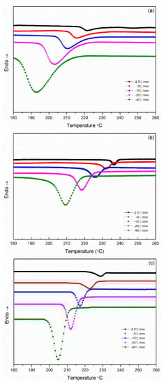 3.3. Nonisothermal Crystallization Behaviors