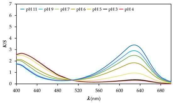 - Van der Schueren, L.; De Clerck, K. The use of pH-indicator dyes for pH-sensitive textile materials. Text. Res. J. 2010, 80, 590–603. [Google Scholar] [CrossRef]
