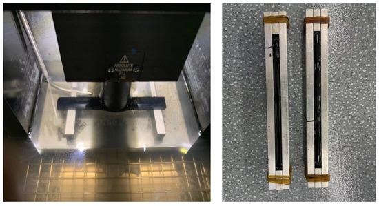 BBR (TE-BBR-F, CANNON, USA) tests were used to evaluate the effect of GO on the low-temperature crack resistance of TPU–SBS-modified asphalt at −16 °C and −20 °C. (The BBR test apparatus is shown in Figure 3.) The creep stiffness S and creep rate m were calculated from the load and deformation values obtained over 60 s. The low-temperature cracking resistance of the modified asphalt was evaluated based on the calculated creep stiffness S and creep rate m [22,23]. Based on the data obtained from the tests, the GO dosage level for the best improvement of the low-temperature crack resistance of the TPU–SBS-modified asphalt was achieved.