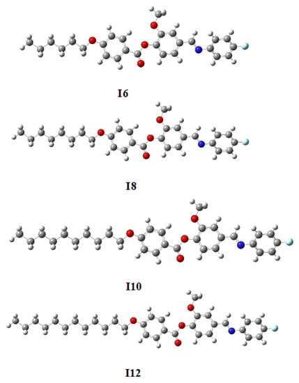 - El-Atawy, M.A.; Naoum, M.M.; Al-Zahrani, S.A.; Ahmed, H.A. New nitro-laterally substituted azomethine derivatives; Synthesis, mesomorphic and computational characterizations. Molecules 2021, 26, 1927. [Google Scholar] [CrossRef]