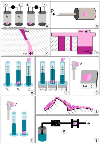 Gas (commonly helium) pycnometry is a method to measure the volume of solids, based on Boyle’s law, also known as Boyle–Mariotte’s law, and is shown in Equation (2).