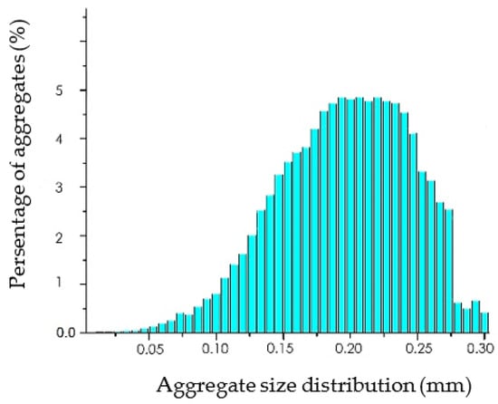 Nanomaterial aggregation in the composite filament was also investigated, and its influence on the final products’ properties was determined through CTAn software. The PA nanocomposite filament’s aggregates constitute 1.2% in volume, with mid-range aggregation sizes placed at 0.18–0.25 mm (Figure 10). For this measurement, the similarity in structure between the organic polymer matrix and the carbon-based additives causes similar X-ray absorption between the two. From the 3D visualization and the indicative reconstructed slices (Figure 9 and Figure 10), it is illustrated that the PA12 nanocomposite filament exhibits needle-like aggregations as well as clusters of aggregations near the filament surface, which may also cause surface morphological variations. Such defects increase the possibility of printing inconsistencies in the final product fabrication process, and, therefore, printing parameters (e.g., nozzle diameter) should be modified.