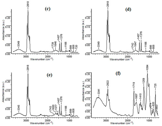 For the spectroscopic studies, a Bruker FTIR Vertex 70 spectrometer equipped with a diamond ATR (attenuated total reflection) device (Golden Gate; Bruker, Billerica, MA, USA) and ATR-FTIR (attenuated total reflection Fourier transform infrared) was used. The ATR-FTIR spectra were measured in the spectral range of 800–4000 cm−1, by the accumulation of 64 scans.