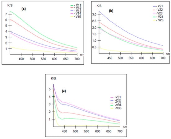 Samples of composite materials were subjected to colour measurements performed on the entire spectrum of the visible range. The sample were evaluated for colour strength in terms of Kubelca–Munk equation [48]