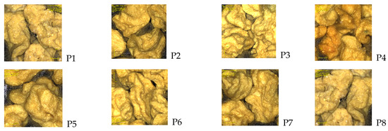All samples exhibited rugosity values (referring to the Sa and Sq) between 20 and 37 µm in the case of Sa, and between 42 and 82 µm in the case of Sq. Both Sa and Sq were used to express the roughness of the material, with the difference between them being the calculation formula. The highest roughness values were registered in the case of samples P8 and P4, which were obtained for the microspheres without any active substance incorporated. Furthermore, the highest rugosity corresponded to samples P4 and P6. The discrepancy between the highest roughness values and Sy are possibly due to the discontinuance of high values on the analyzed area. An example in this matter is the sample P1, whereas the Sy value is much smaller than in the sample P3. This could mean that extremely large heights, in the case of sample P3, are low in number, while the largest height values in sample P1 are more consistent. This also occurs due to the more or less wrinkled analyzed areas. It should also be mentioned that due to the nature of this analysis, while only local aspects are measured, the images of the specific heights measured and the general aspect of the images should also be considered. However, with the larger differences in the present values, the more distinguishing results will be more correct. As for the appearance of the samples, all samples have a similar aspect, with wrinkled areas on the surface of the analyzed granules. Some samples present a smoother surface, which is visible in the analyzed height profile for each sample.