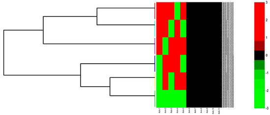 The PCA heat map representation emphasizes that the principal coordinates of PC1–PC5 present significantly high values that are able to be used to generate an appropriate number of clusters using the AHC method.
