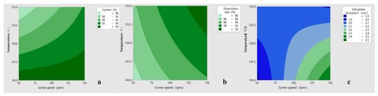 | Polymer | Drug Content (%) | Temperature (°C) | Torque (%) | Appearance |