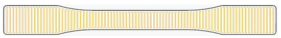 Schema of the transverse tensile specimen as obtained in Eiger (Markforged’s slicer program) with the trajectory turns at the edges of the specimen. Orange line indicates the trajectory of the fiber filament and dark line indicates the trajectory of the nylon wall.