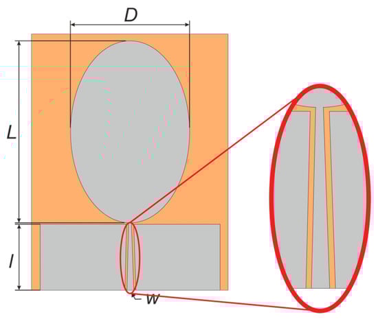 The mathematical calculation of the important parts of the antenna, such as the diameter (D) and length (L) of the radiation element, as well as their ratio (D:L), is part of the UWB antenna design. In addition, the length (l) and width (w) of the feeding element are calculated in the design as well. The software Ansoft HFSSTM was utilized for design and simulation purposes. Figure 1 shows the planned antenna with an elliptical coplanar waveguide shape.