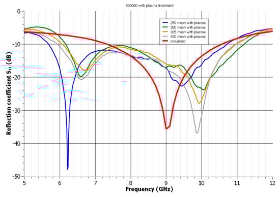 The influence of the mesh of the used screens on the reflection coefficient of the antenna after the plasma treatment—paste ED3000.