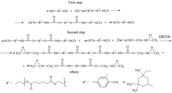 A two-step synthetic route for epoxyurethane oligomers via oligodiisocyanate formation is shown in Figure 2: