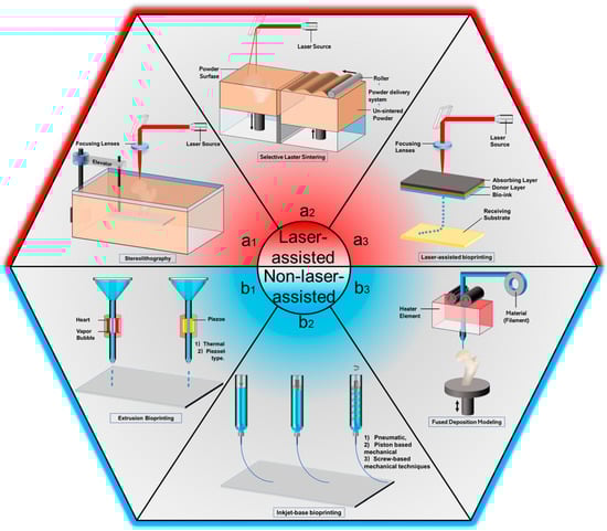 - Hakobyan, D.; Kerouredan, O.; Remy, M.; Dusserre, N.; Medina, C.; Devillard, R.; Fricain, J.-C.; Oliveira, H. Laser-assisted bioprinting for bone repair. In 3D Bioprinting; Methods in Molecular Biology; Springer: Berlin/Heidelberg, Germany, 2020. [Google Scholar] [CrossRef]