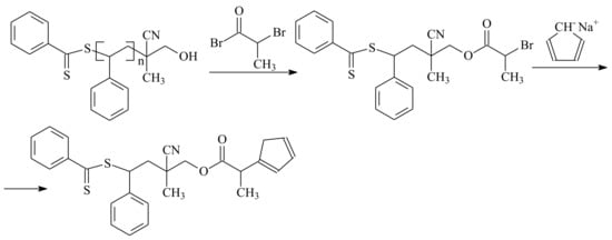 - Bekanova, M.Z.; Neumolotov, N.K.; Jablanovic, A.D.; Plutalova, A.V.; Chernikova, E.V. Radical Replacement of the Dithiocarbonyl Group of Poly(methyl methacrylate) Obtained by Reversible Addition–Fragmentation Chain Transfer Polymerization. Polym. Sci. Ser. C. 2019, 61, 188–199. [Google Scholar] [CrossRef]