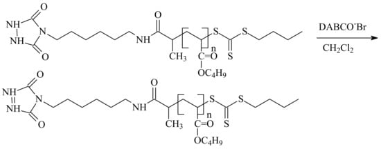 The triazolinedione-terminated poly(butyl acrylate) was synthesized using trithiocarbonate II (Figure 2) and successfully coupled with poly(ethylene glycol) terminated by diene. The reaction was completed in 5 s at room temperature, being the most rapid click reaction in polymer chemistry to date [83].