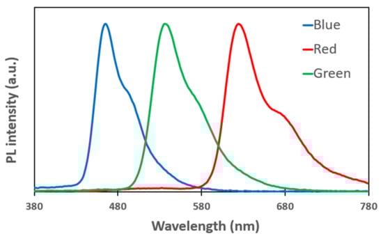 Measured the photoluminescence spectrum of the used R, G, and B emitting layers (EML).