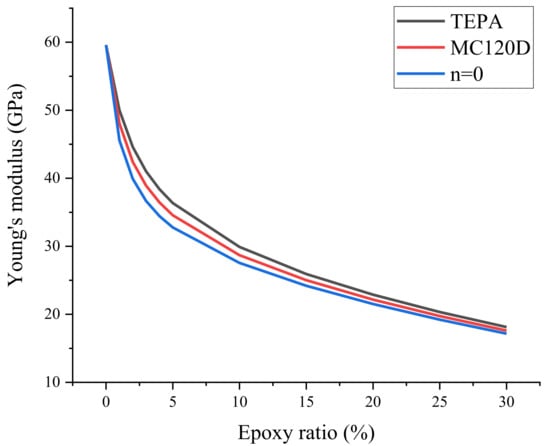 | Epoxy Ratio (%) | Young’s Modulus (GPa) | ||